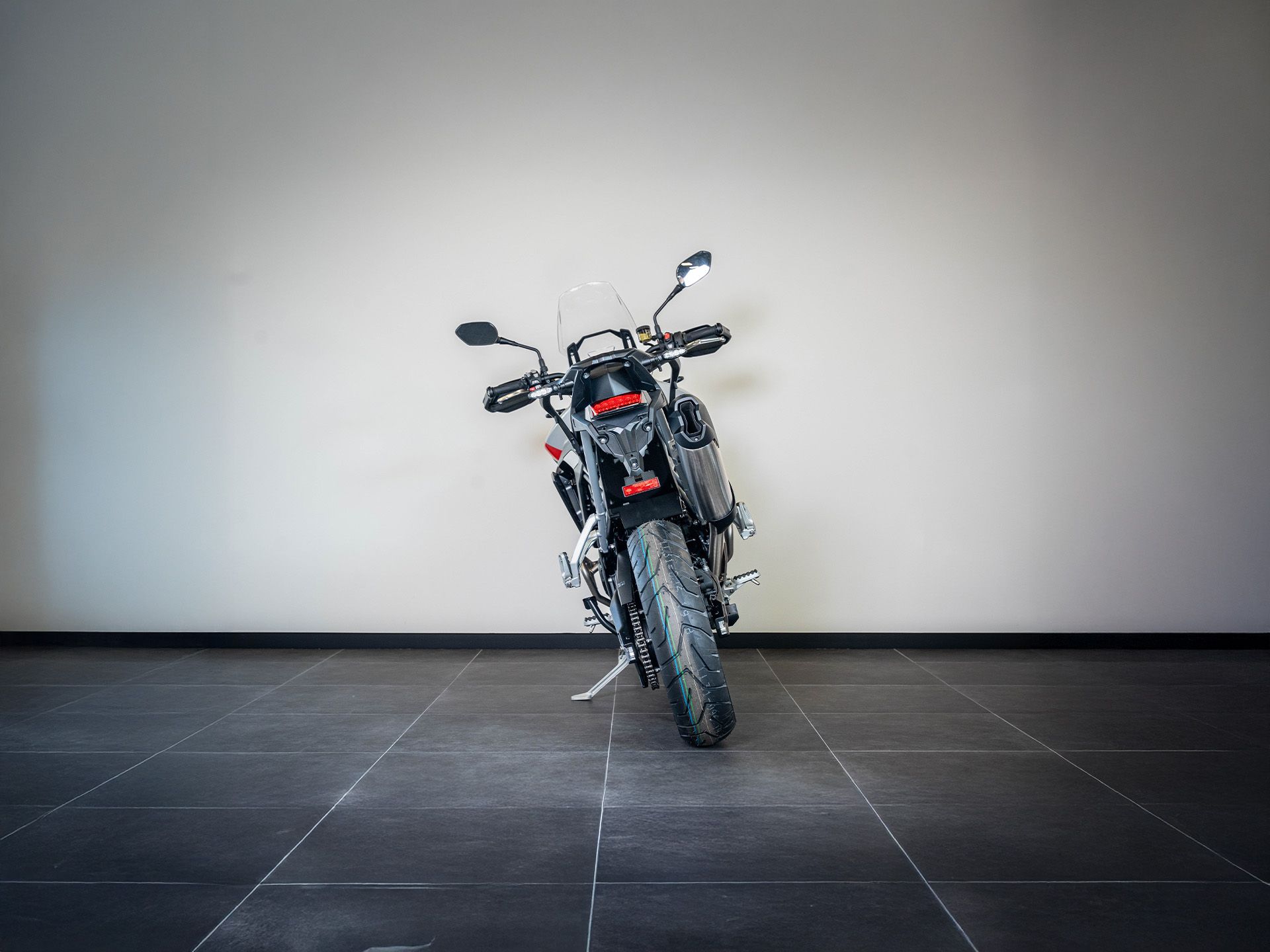 Frein arrière : Disque simple de 255 mm. Étrier coulissant à piston unique, ABS multi-mode, ABS optimisé pour les virages.